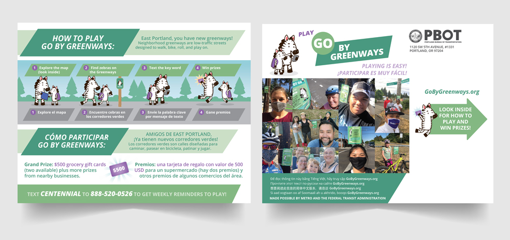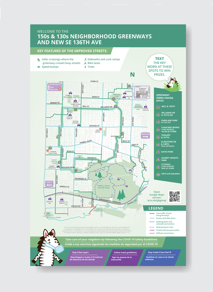 Description: During COVID-19, PBOT wanted a way to create awareness of Neighborhood Greenways (slower speed limit residential streets safe for cyclists and pedestrians) and get people outside in a safe activity. Participation among community members exceeded projections and positive feedback was received across the board. Since the initial program there have been two additional games released.