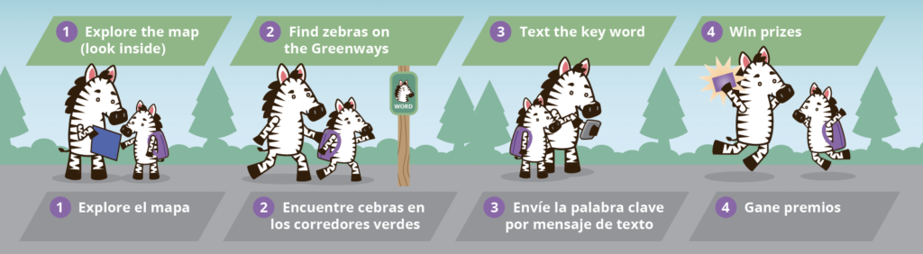 Role: Go By Greenways consisted of hidden posters on Greenways with keywords. This required a mailer with map, social media graphics and fun zebra mascot.