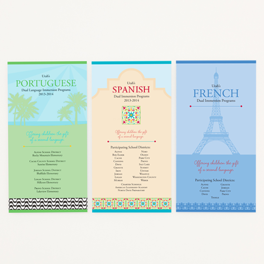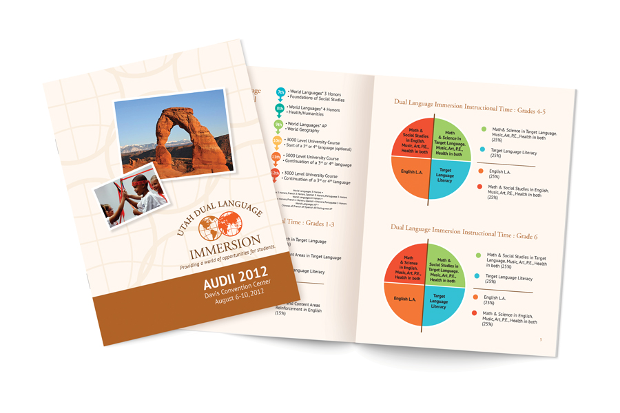 Description: In 2010, the Dual Language Immersion program was introduced into select Utah schools. The need was to create an identity of the program and then develop supporting collateral. They needed a website to host the program and them additional sites for each language. Each site was created for parents to learn more information about enrolling their children, the program’s benefits and lesson plans. Also a spot for teachers to access resources and teaching materials.